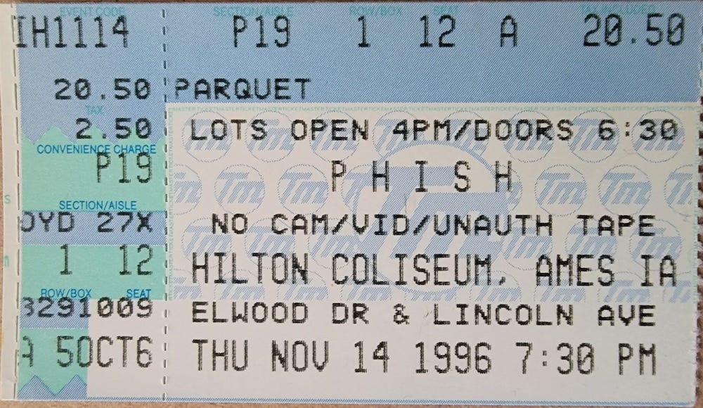 So the 1996 stopover in the central Iowa town of Ames — a town of 66,000 whose population is roughly half Iowa State students — was a bit of a throwback. Played on a Thursday night between the more major metropolitan areas of Minneapolis and St. Louis, it had all the ingredients for a sleeper show. Unfortunately, the weather outweighed all these factors, as a nasty ice storm raged outside the Hilton Coliseum, keeping the room only 2/3rds full. It was a lesson in why you probably shouldn’t play shows in the deep midwest from roughly November to March (a lesson Phish would regularly ignore).